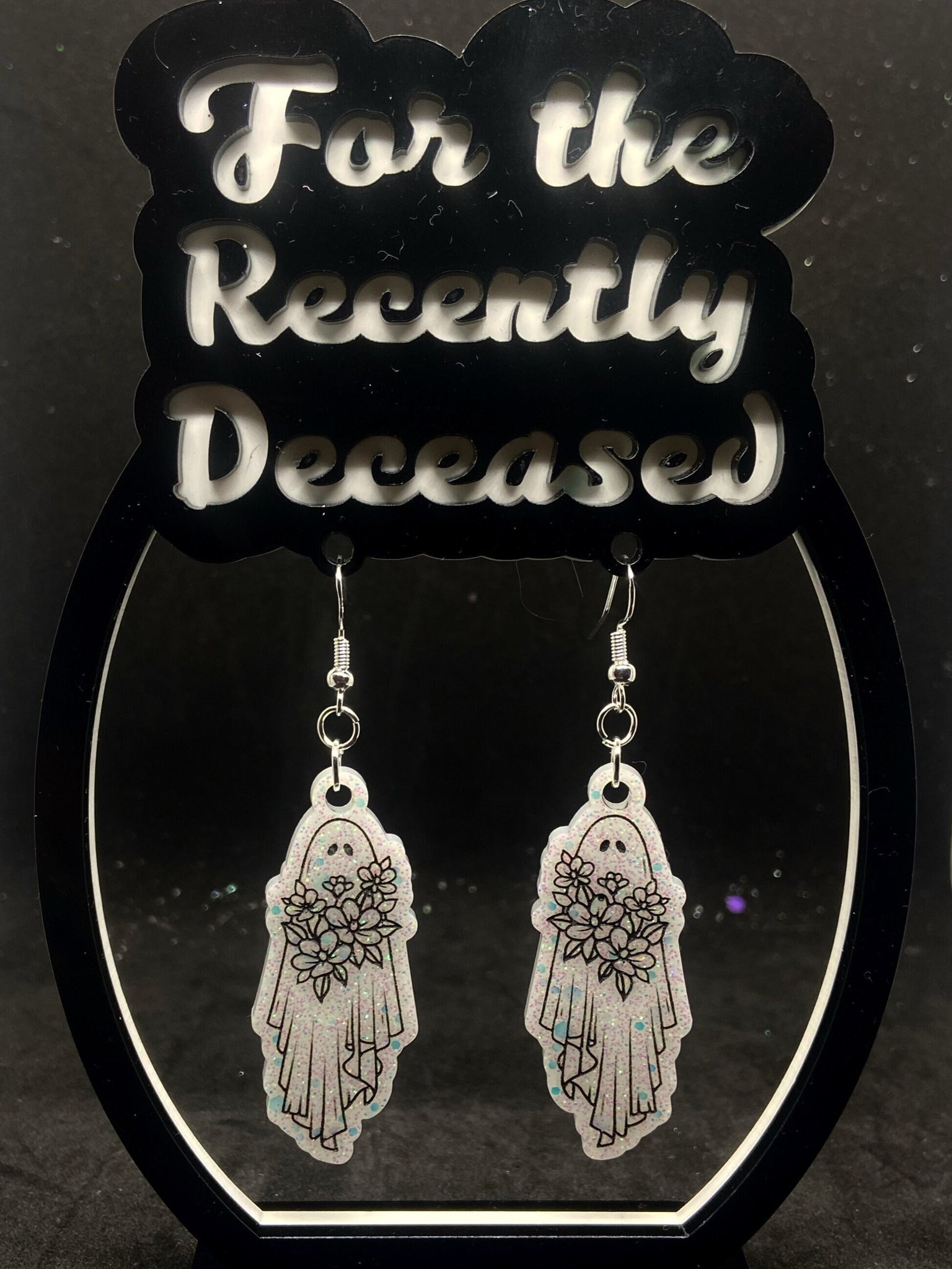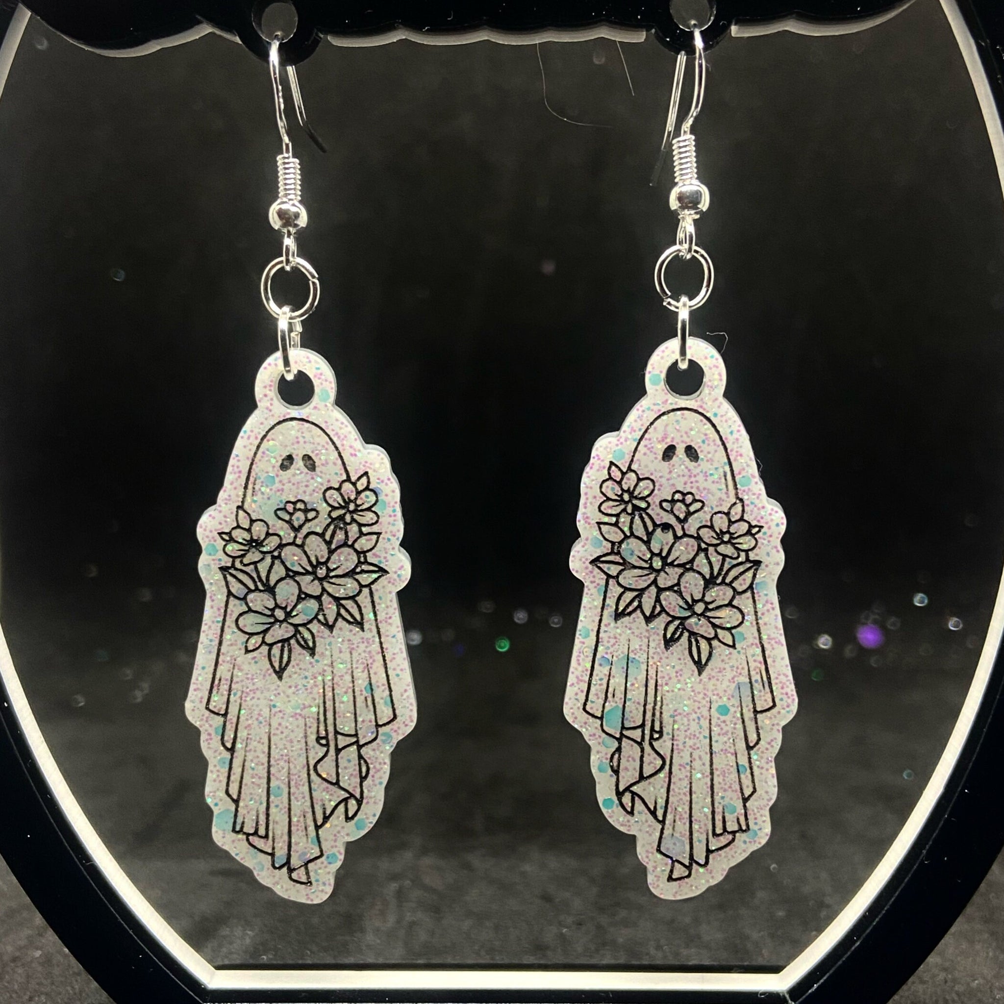 teeny ghosts carrying floral bouquets
