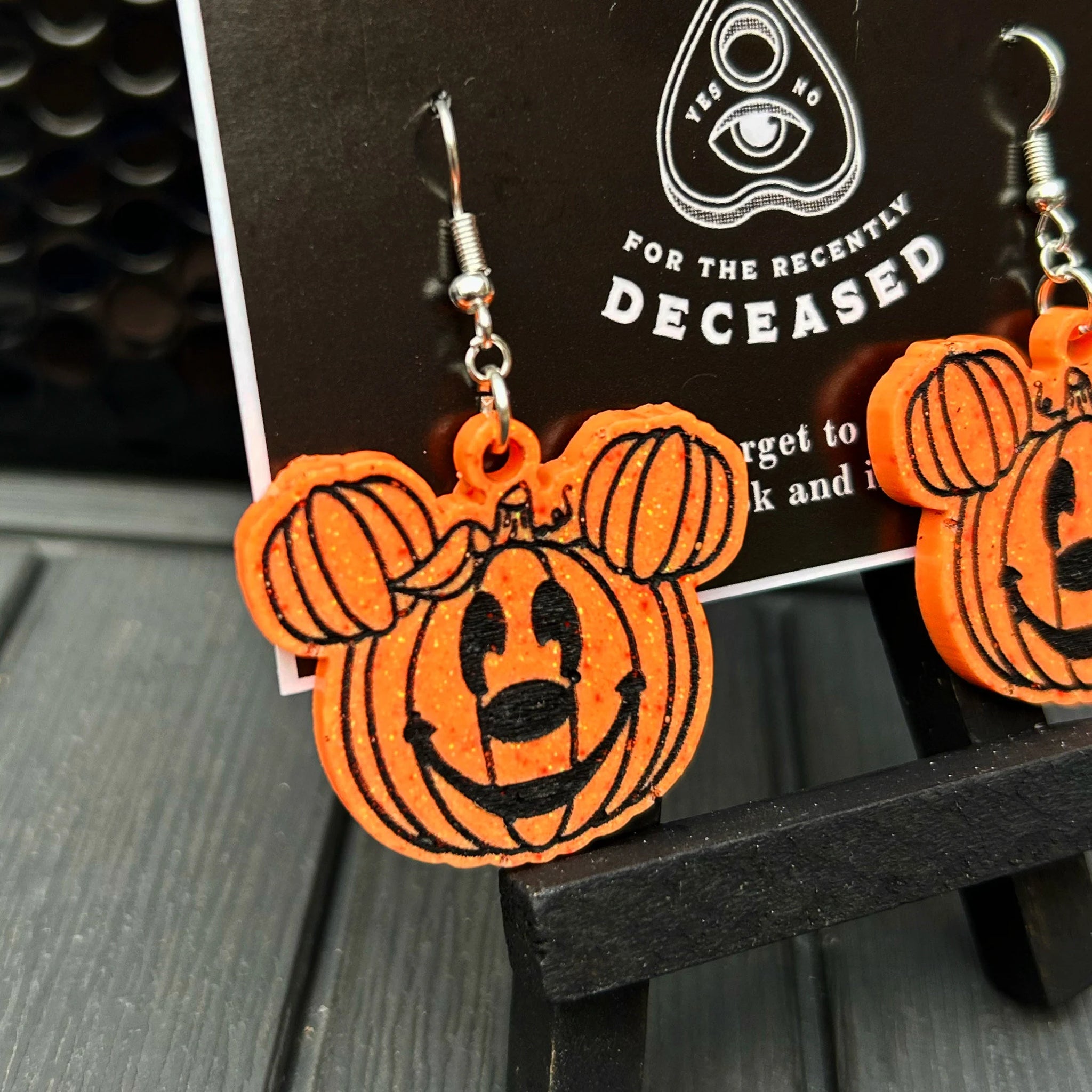 M Mouse inspired pumpkin earrings.